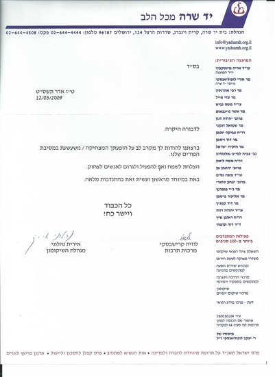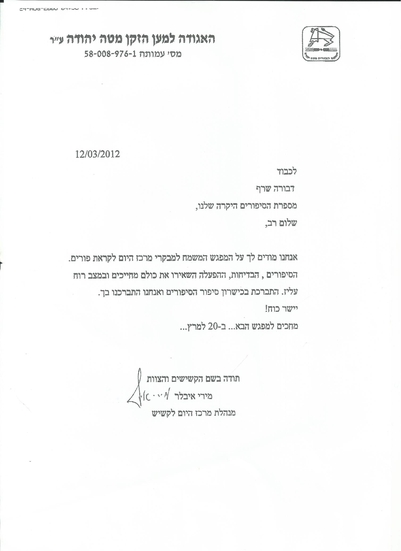תודה בשם הקשישים והצוות,