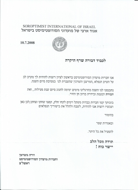 לכבוד דבורה שרף היקרה,